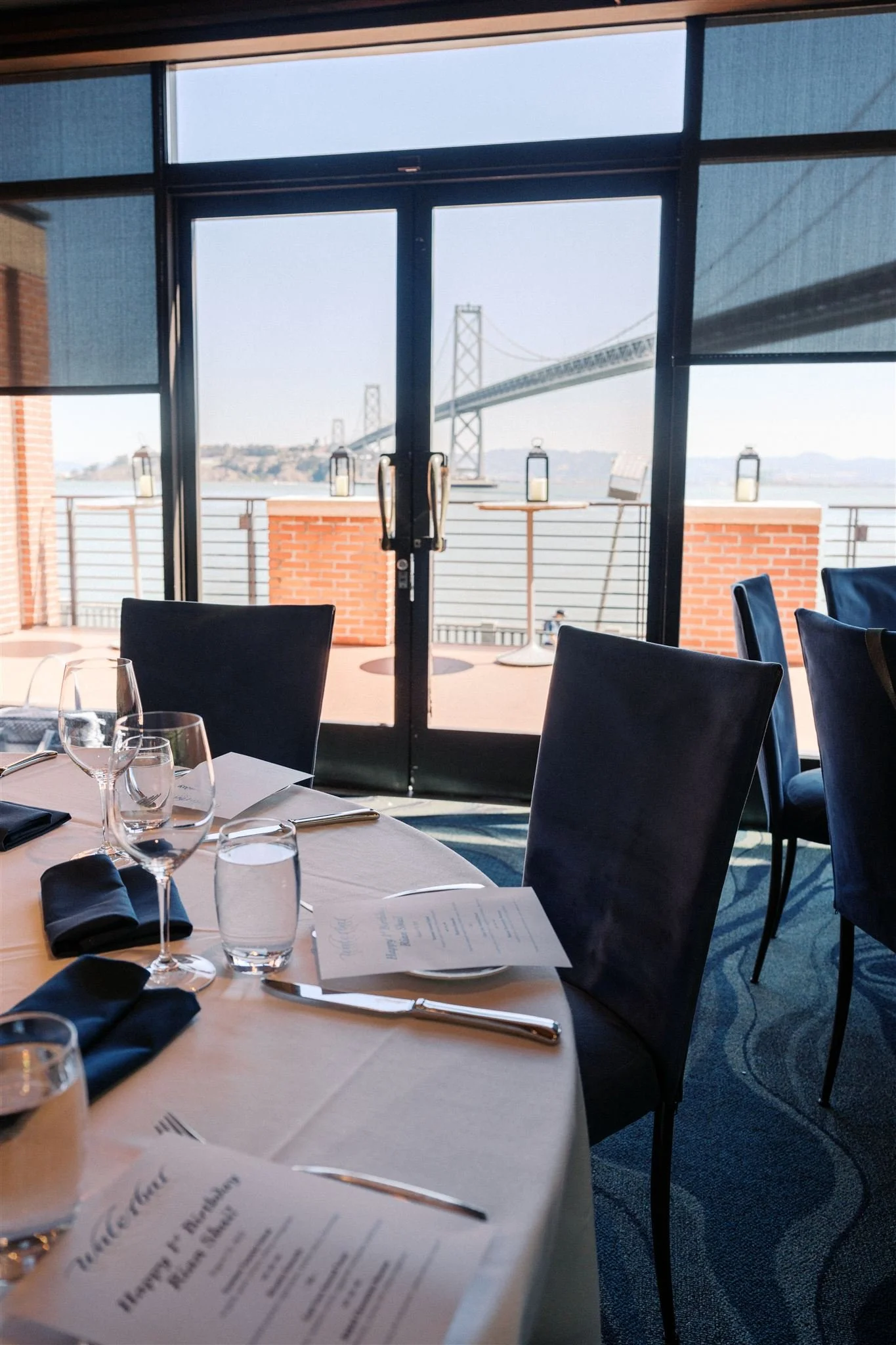 2nd floor holds 60 seated with private balcony overlooking Bay Bridge